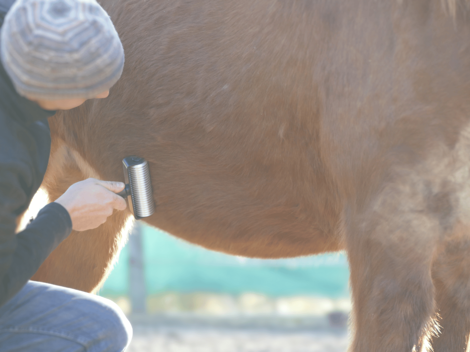 So wendest du die NeedleyRoll bei deinem Pferd in der Rippenregion an: