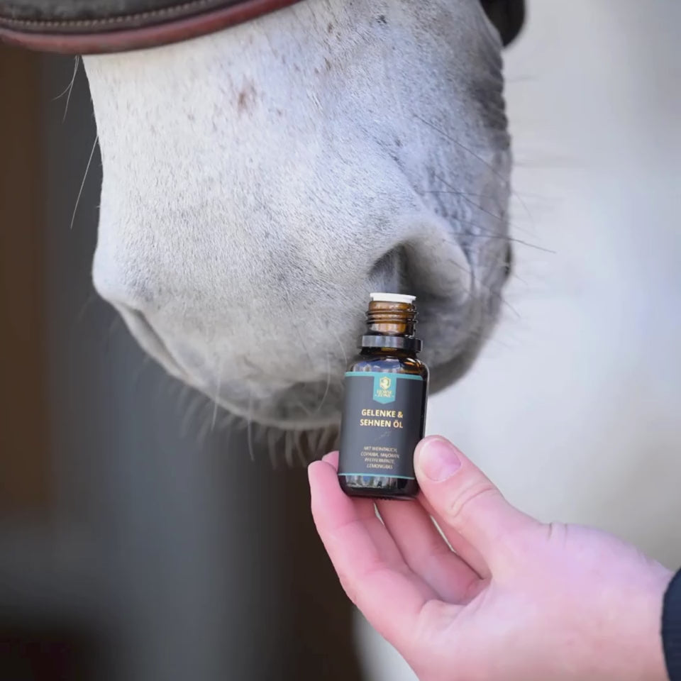 Unser Gelenk- & Sehnenöl für Pferde wurde speziell für Pferde mit Gelenkproblemen, Arthrose, Sehnenbeschwerden und leichten Muskelverspannungen entwickelt.